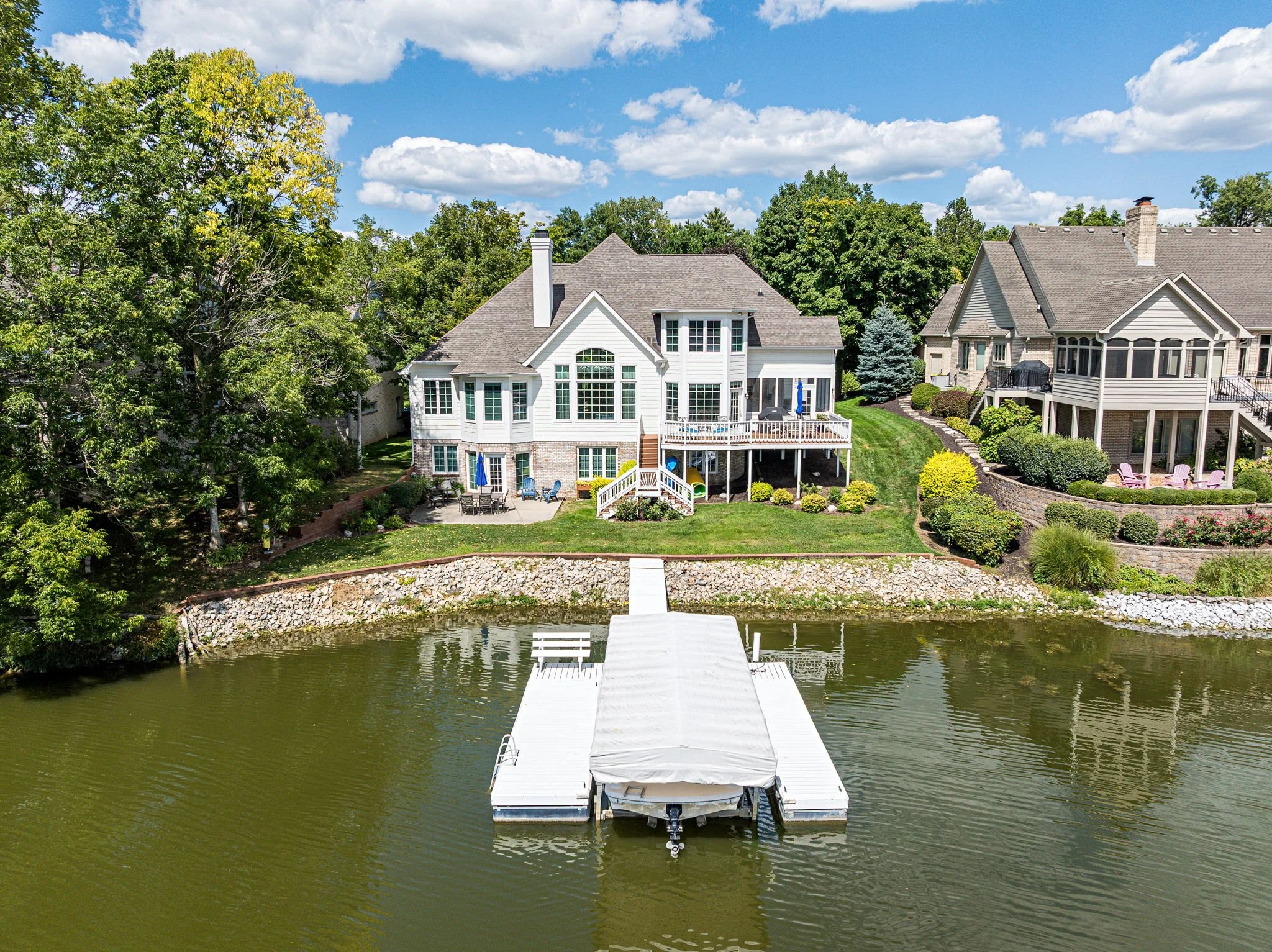 This sensational custom home combines curbside elegance with serene waterfront living. Perfectly situated at the end of a secluded cove just off the main body of Geist Reservoir, it has been lovingly maintained by the original owner. Walls of picture windows frame stunning views of mature trees, lush landscaping and the sparkling water beyond. The functional floor plan offers a main level primary suite and three additional bedrooms upstairs, providing flexibility for any lifestyle. The beautifully designed kitchen flows seamlessly into the eat-in dining area and leads to the home's favorite spot - the charming screened-in porch, perfect for relaxing or entertaining. The lower level walkout features a wet bar, a spacious living area, a fifth bedroom and a full bathroom, making it ideal for guests or gatherings. Ample storage throughout ensures plenty of room for lake gear, holiday decor and more. Step outside to your private boat dock, offering direct lake access for boating, fishing or simply soaking in the serene water views. This home truly delivers the ultimate lakefront lifestyle.