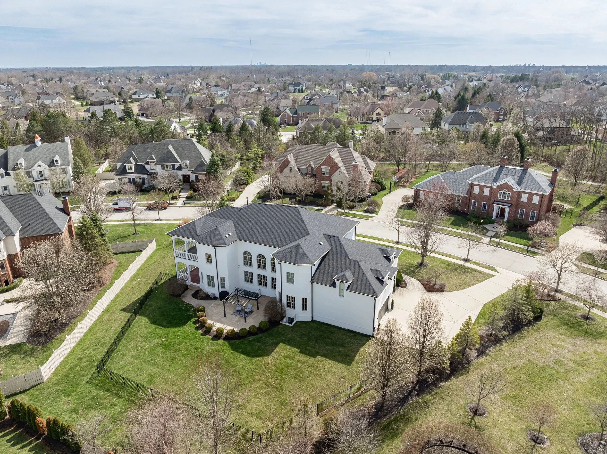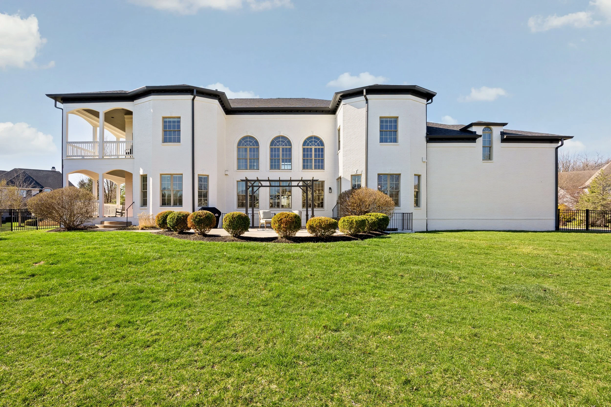 Refined elegance meets grand scale living at this Europen-inspired brick estate in the esteemed Village of WestClay. Classical symmetry, arched windows and sweeping balconies create timeless grandeur. From the moment you enter, a sweeping wrought iron staircase sets the tone for the refined craftsmanship found throughout. The dramatic two-story living room is a true showpiece, featuring coffered ceilings and a breathtaking wall of windows that floods the home with natural light, creating an airy, sophisticated ambiance. At the heart of the home, a stunning dual-sided fireplace is framed by custom built-in bookcases and detailed millwork. Designed for elevated living, every space feels thoughtfully curated. The home also features two stately private offices, each richly appointed with floor to ceiling bookcases. This exceptional property boasts six spacious bedrooms, each with its own private en-suite bath, offering comfort and privacy for family and guests alike. With two primary suites, including a main-level retreat, this home offers flexibility and convenience rarely found. Situated on over half an acre, the outdoor living experience is equally impressive. Expansive double-decker balconies provide the perfect setting for morning coffee, evening gatherings, or simply taking in the serene surroundings. A rare offering that seamlessly blends grandeur, functionality and sophisticated design-this is luxury living at its finest.