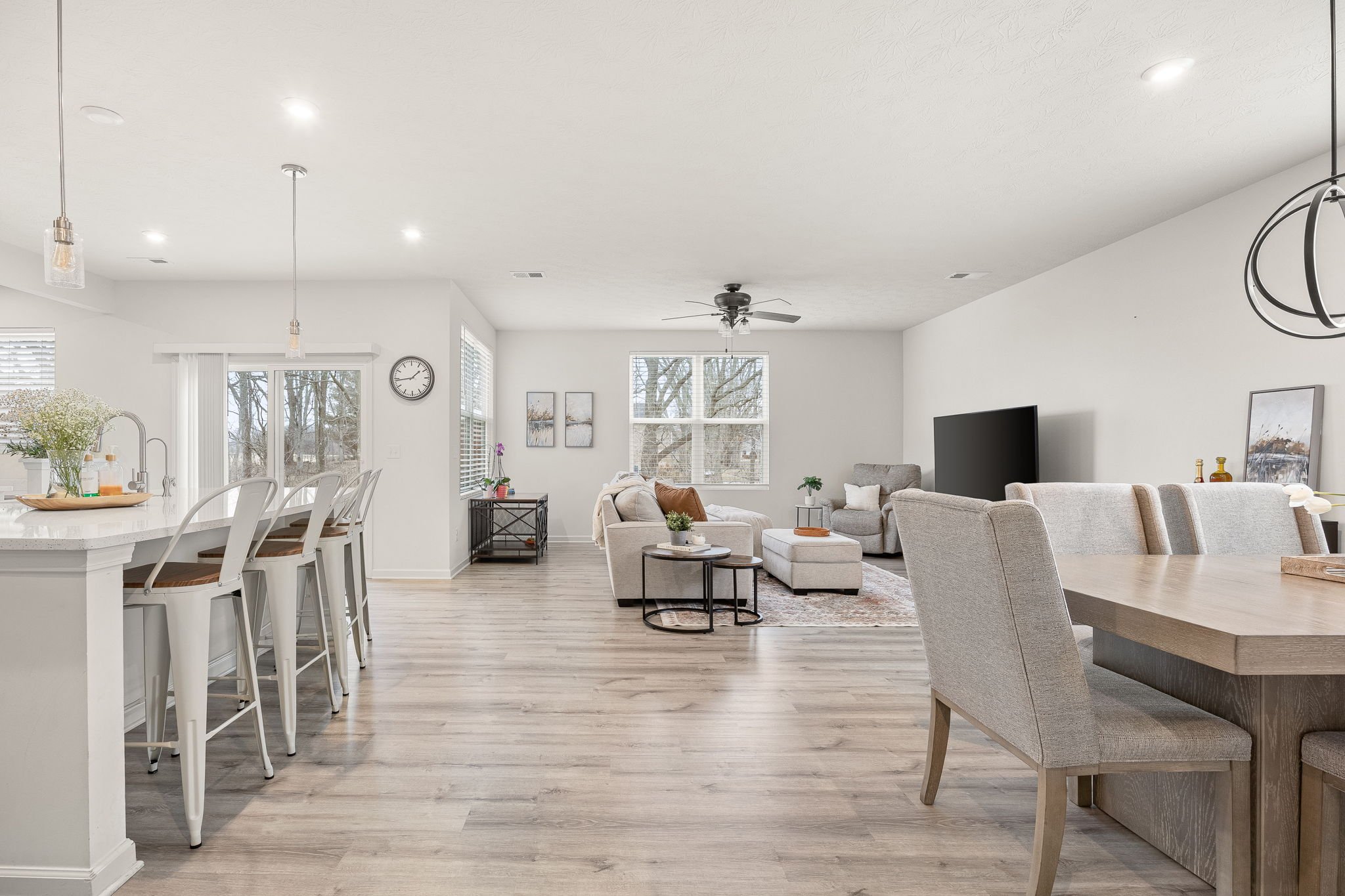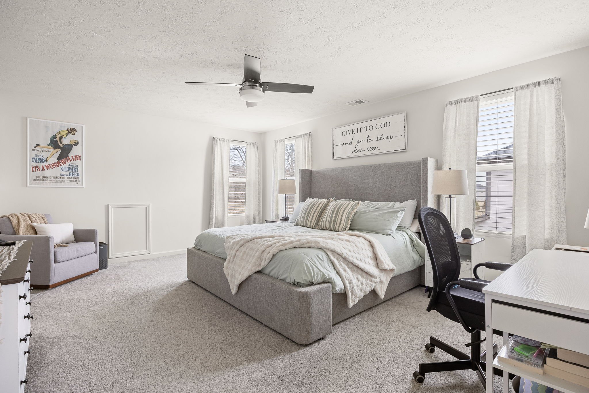 Better than new 2 story home in West Noblesville features a main floor guest suite & a tree lined backyard! You'll love this Fifth Avenue floorplan by Pulte, thoughtfully designed to make the main living area feel inviting & connected with its open concept feel. The light & bright kitchen offers plenty of counter space - perfect for meal prepping or entertaining. The upgraded corner pantry is a dream for the grocery haul & the convenient desk space around the corner offers an ideal spot to keep things organized. Customized mud room added with hooks and cubbies for backpacks, coats & shoes. The main floor bedroom & full bath provide flexible living options whether you're looking for multigenerational living, a private home office or a guest suite for visitors. Upstairs, you'll find an open loft space, 2 other bedrooms with walk-in closets, the laundry room with floating wood shelving and the spacious primary suite. Don't miss the exceptional counterspace in the en suite bath & the gorgeous tiled shower enclosed with glass doors! The 3 car garage offers abundant storage and the backyard patio will be the most peaceful spot come sunnier weather! Walk to nearby Noble Crossing Elementary School and enjoy this centralized Hamilton County location close to parks, dining & shops. Additional highlights include a premium Kinetico whole-home water system and many other upgrades. Be sure to check out the attached list!